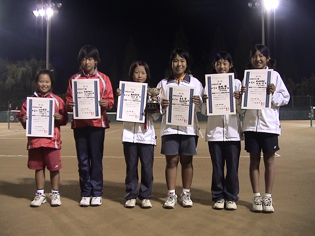 女子の部では多治見ジュニアの6年生3ペアが各ブロックを1位で通過し、決勝トーナメントでは中学生相手に優位に試合を進め渡辺・藪下組と田中・加藤組が1位2位を独占しました。
